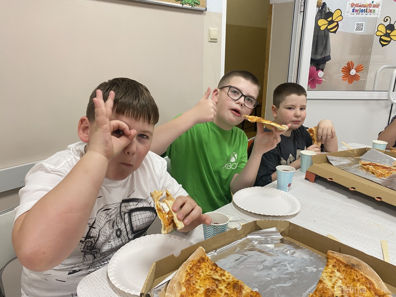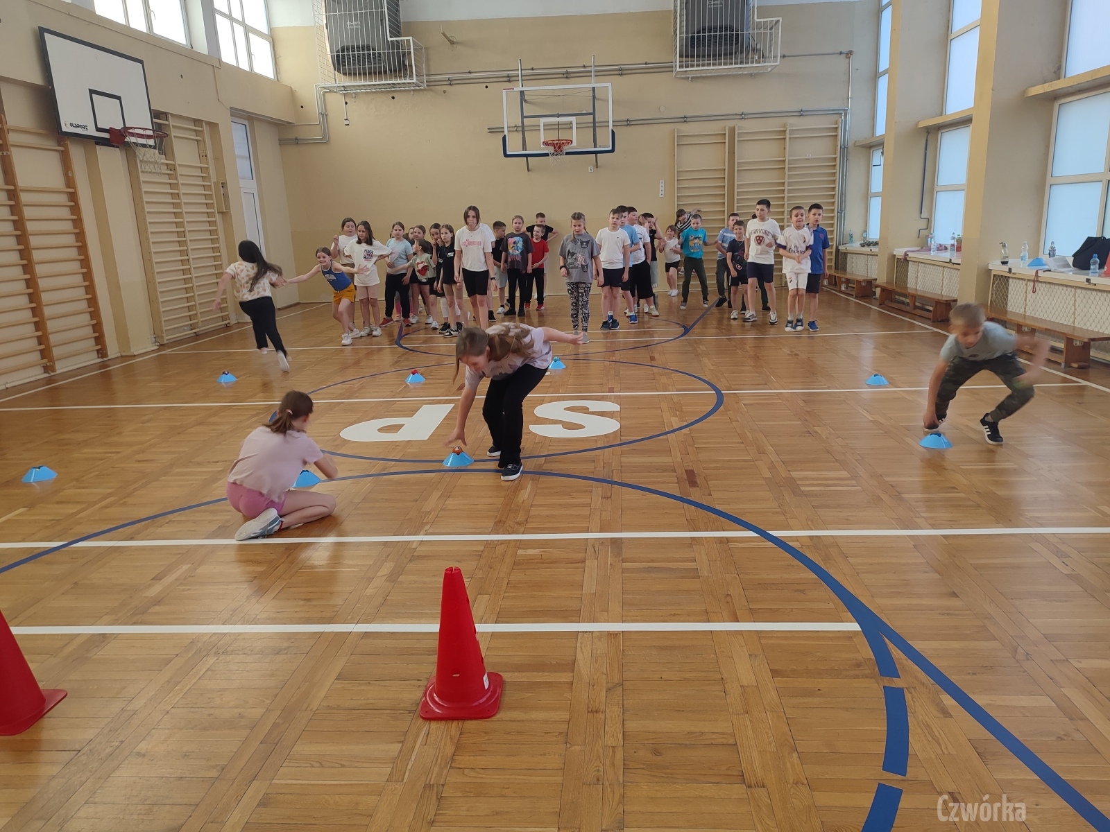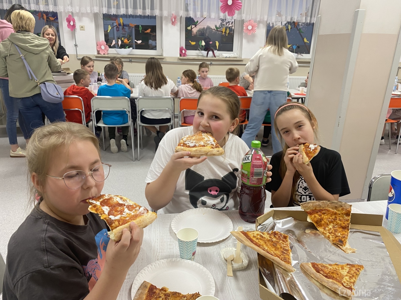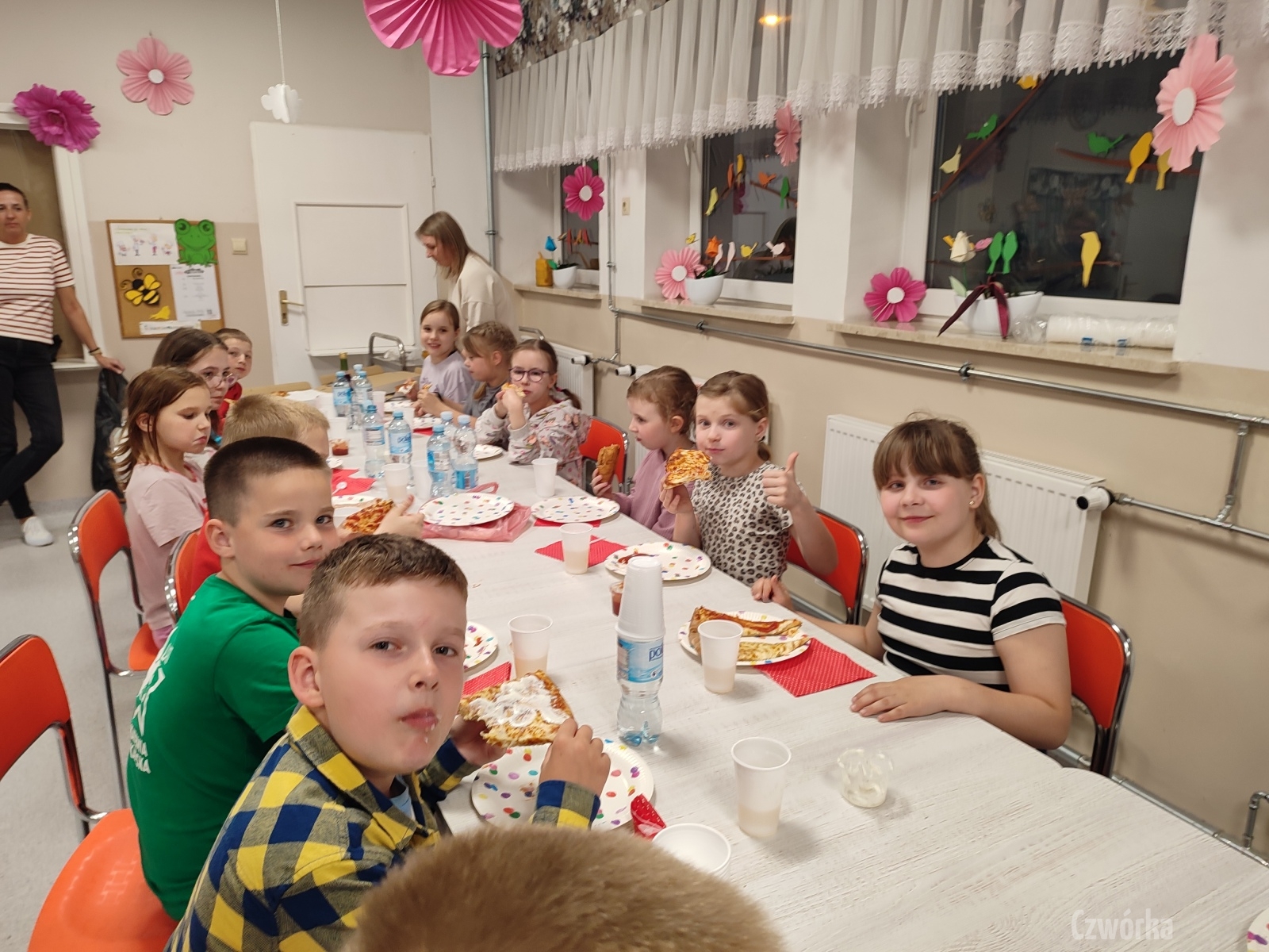 W piątek – 25 kwietnia o godzinie 17.30 do szkoły po raz drugi zaczęli przychodzić uczniowie klasy 2a i klasy 3b. Tym razem zamiast plecaków przynieśli śpiwory, piżamy, nocny prowiant i świetne humory. Najpierw z pomocą rodziców zamienili sale lekcyjne na „ sypialnie jednej nocy”. Następnie odbyły się zawody sportowe w sali gimnastycznej- oczywiście w drużynach byli uczniowie z różnych klas. Po sportowych emocjach i zaciętym kibicowaniu był czas wspólną ulubioną kolację – pizzę, która przygotowali rodzice. Potem były filmy, gry planszowe, poznawanie zakamarków szkoły przy świetle latarek i niekończące się nocne rozmowy z kolegami i koleżankami… Nikt się nie nudził, było radośnie, no i inaczej niż w ciągu dnia.