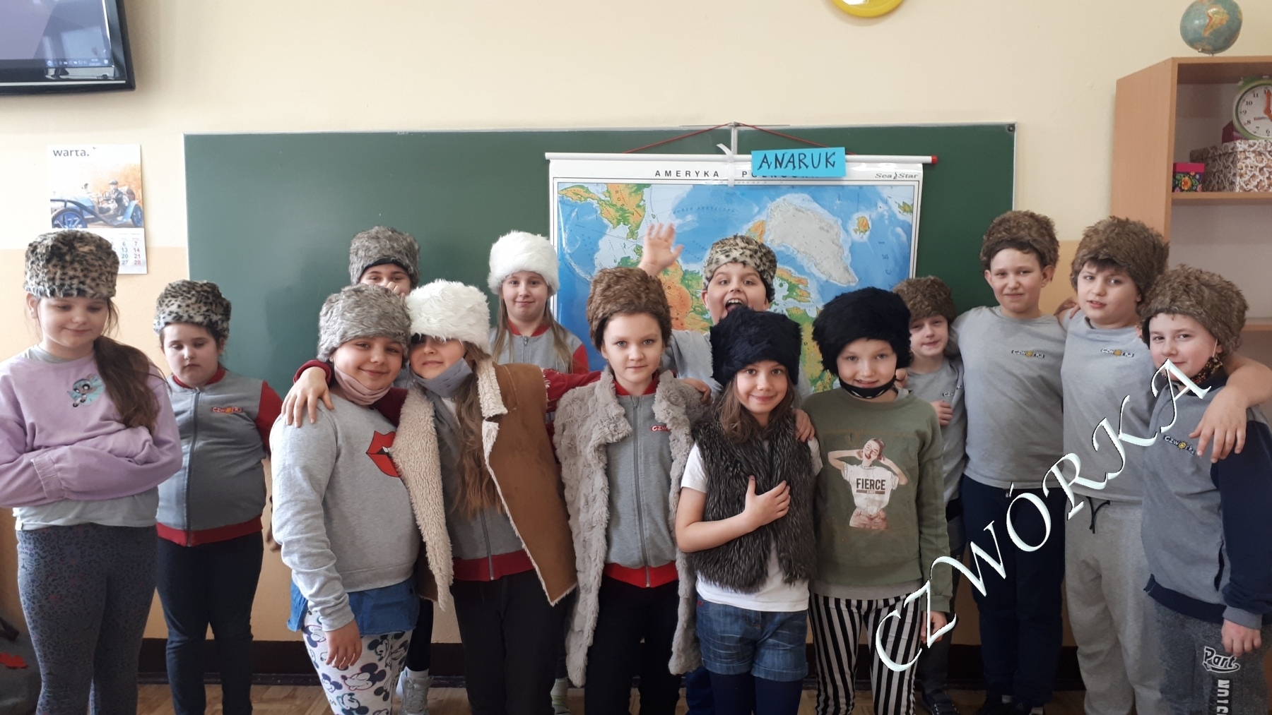 Lektura książki Czesława Centkiewicza „Anaruk, chłopiec z Grenlandii” przeniosła trzecioklasistów nie tylko w dalekie, arktyczne rejony naszej planety, ale również w odległe czasy. Była przyczynkiem do ciekawych lekcji języka polskiego, geografii, przyrody a także historii. Dzieci z zainteresowaniem i niemałym zaskoczeniem porównywały życie współczesnych Inuitów do przedstawionego w książce. Pięknie pracowały z mapą i globusem, potrafiły wskazać Grenlandię i podać jej stolicę. Zaprezentowały na sobie ubiór głównego bohatera. Na podsumowanie zajęć z lekturą uczniowie klasy 3b wspólnie wykonali makiety mroźnej wyspy jak również i samego Anaruka.