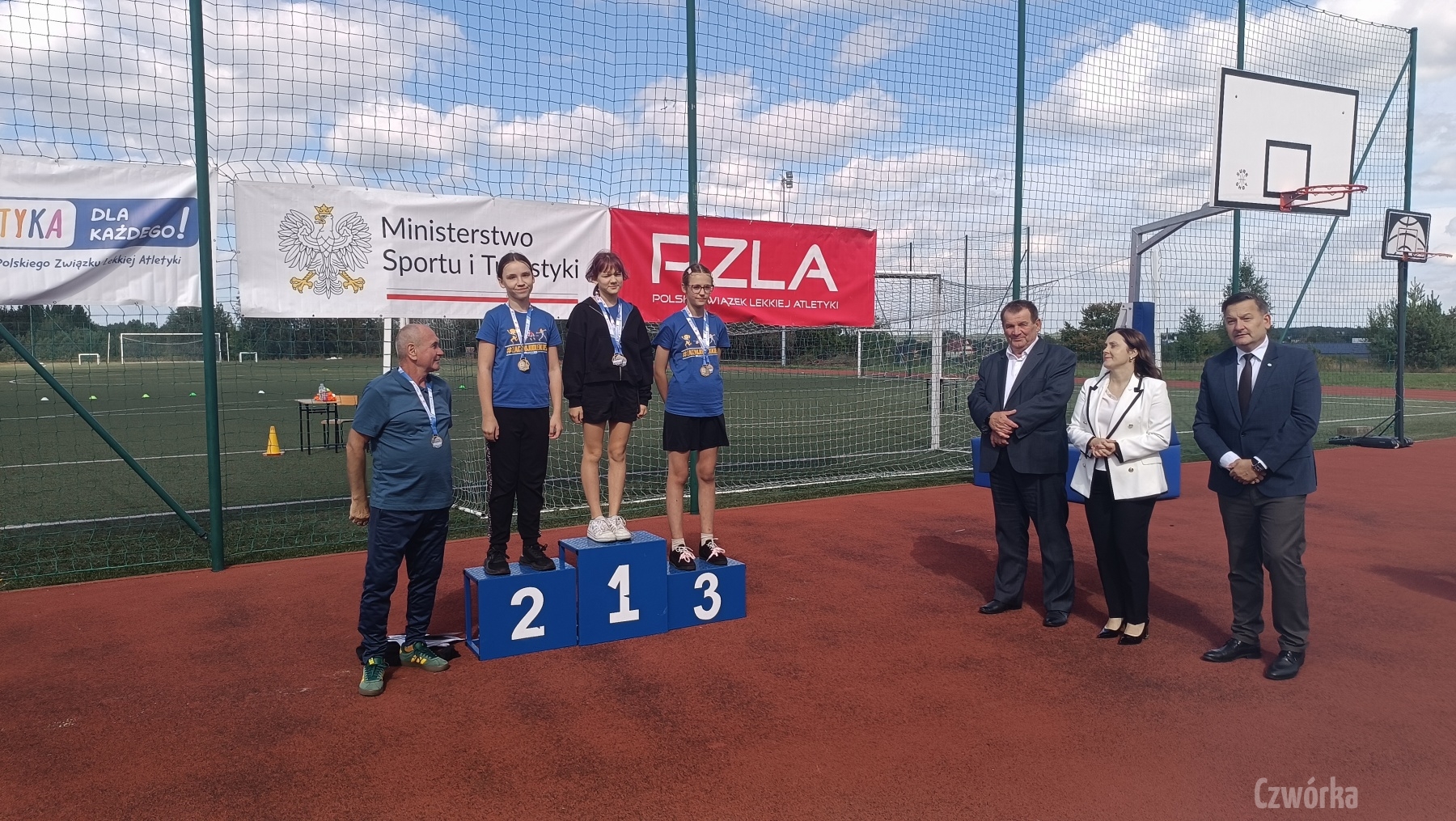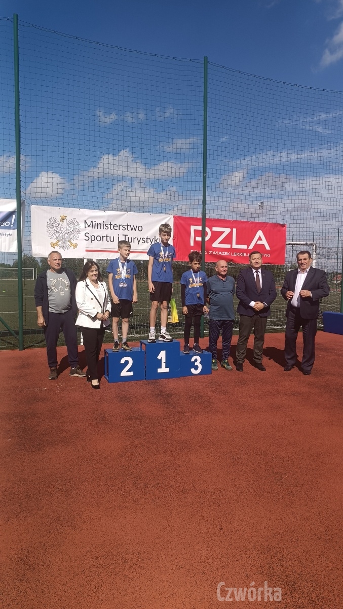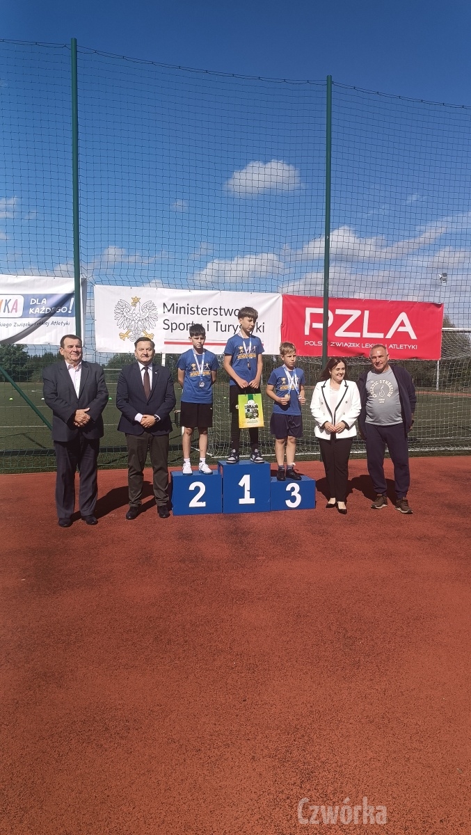Dnia 15.09.2025 r. na stadionie lekkoatletycznym w Kosowie Lackim odbyły się cykliczne zawody „Zacznij od lekkiej” organizowane przez Polski Związek Lekkoatletyki. W zawodach startowali uczniowie z 9 szkół podstawowych powiatu sokołowskiego i węgrowskiego, w tym 14 osobowa ekipa z naszej szkoły. Z SP4 najlepiej zaprezentowali się Maria Rozumna I m-ce w biegu na 60m i I m-ce w rzucie nerpem (przyrząd służący do nauki rzutu piłką palantową). Adam Gmiter I m-ce w biegu na 60m i I m-ce w skoku w dal, Tomasz Karpiński I m-ce w skoku w dal i III m-ce w rzucie nerpem, Mikołaj Zagierłowski I m-ce w skoku w dal i III m-ce w biegu na 300m, Fabian Figiel I m-ce w biegu na 600m, Oskar Kowalczyk II m-ce w biegu na 100m i II m-ce w biegu na 300m, Alan Rybczyński II m-ce w skoku w dal i II m-ce w rzucie nerpem, Joanna Mróz II m-ce w skoku w dal i III m-ce w rzucie nerpem, Mateusz Zalewski II m-ce w biegu na 60m, Ewelina Skóra II m-ce w biegu na 600m, Paweł Szewczuk III w rzucie nerpem, Gabriela Osipiak III m-ce w biegu na 600m oraz Jakub Maliszewski III m-ce w biegu na 100m. Gratulujemy i życzymy dalszych sukcesów!!!