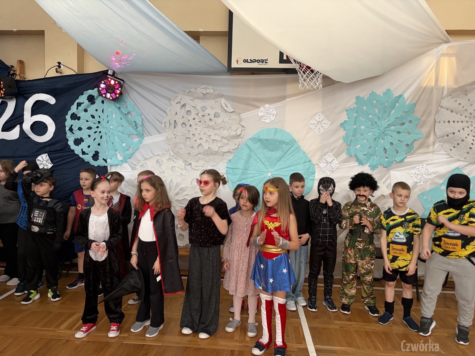 12 lutego 2026 r. w naszej szkole odbyła się długo wyczekiwana choinka szkolna, która jak co roku zgromadziła przedszkolaków oraz uczniów klas 1–8. Pod opieką swoich wychowawców uczniowie bawili się w pięknie udekorowanej sali gimnastycznej, która na ten dzień zamieniła się w prawdziwą zimową krainę. Kolorowe przebrania, taneczna muzyka i uśmiechy na twarzach stworzyły wyjątkową atmosferę. Dzieci tańczyły, brały udział w wesołych konkursach i animacjach, a dodatkowych emocji dostarczył występ Białego Misia. To był dzień pełen uśmiechu, wspólnej zabawy i niezapomnianych chwil, które na długo pozostaną w pamięci całej szkolnej społeczności.